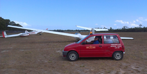 Blanik (GYK) behind Piper Pawnee tug (SPA) lifting off