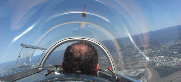 Speedy at the controls in Yankee Kilo above the