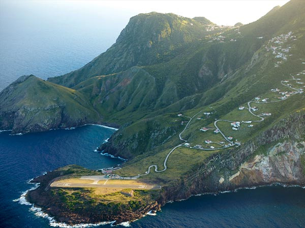 are cliffs that literally drop into the sea at each end of the runway,